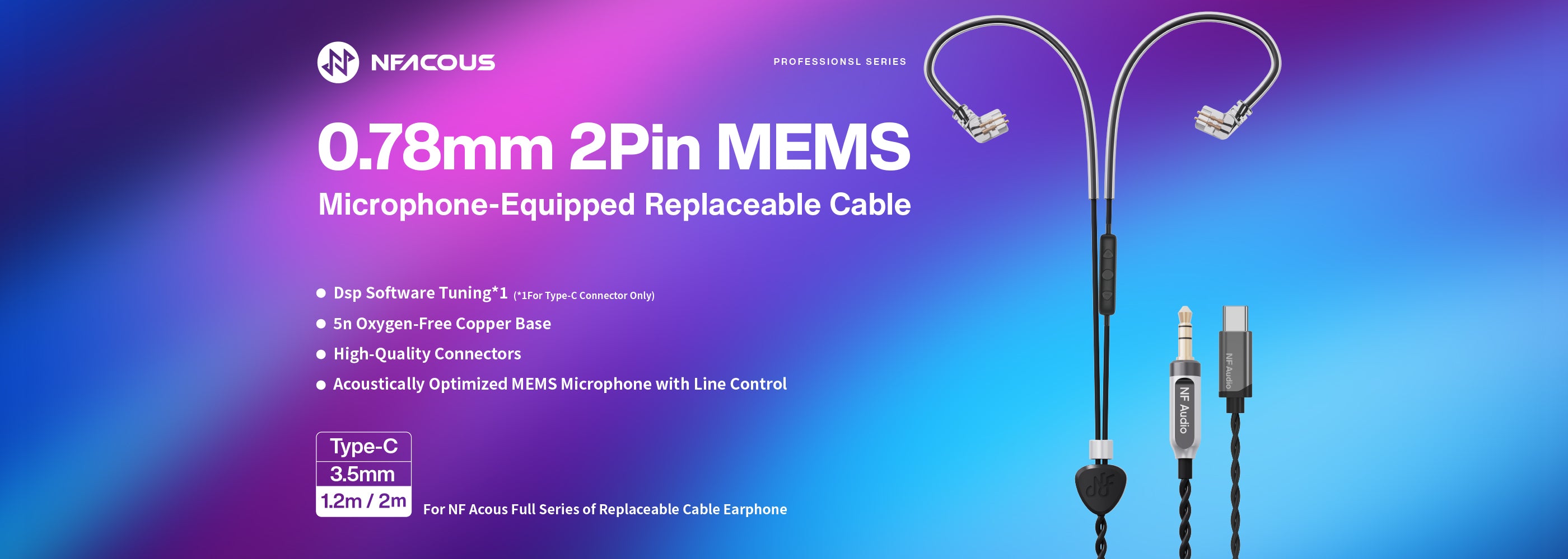NF ACOUS 2pin 0.78mm MEMS Mic Cable. 3.5mm/USB-C, 1.2m/2m choices available. Support most of the 2pin IEMs.