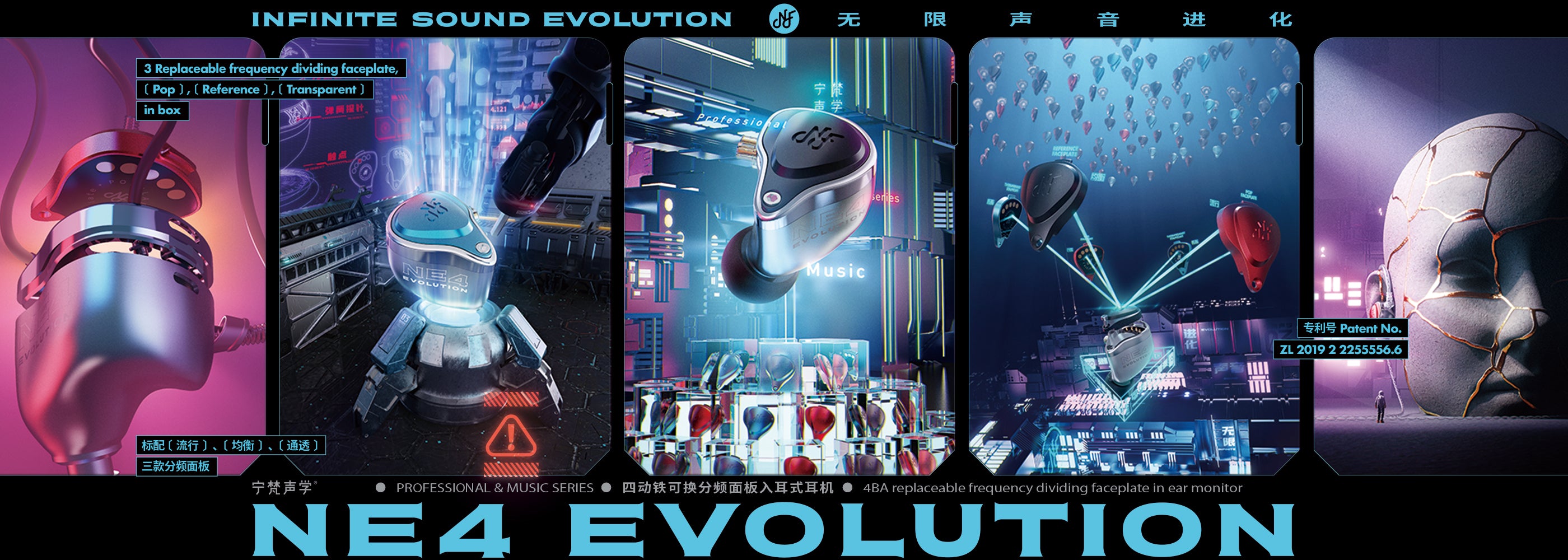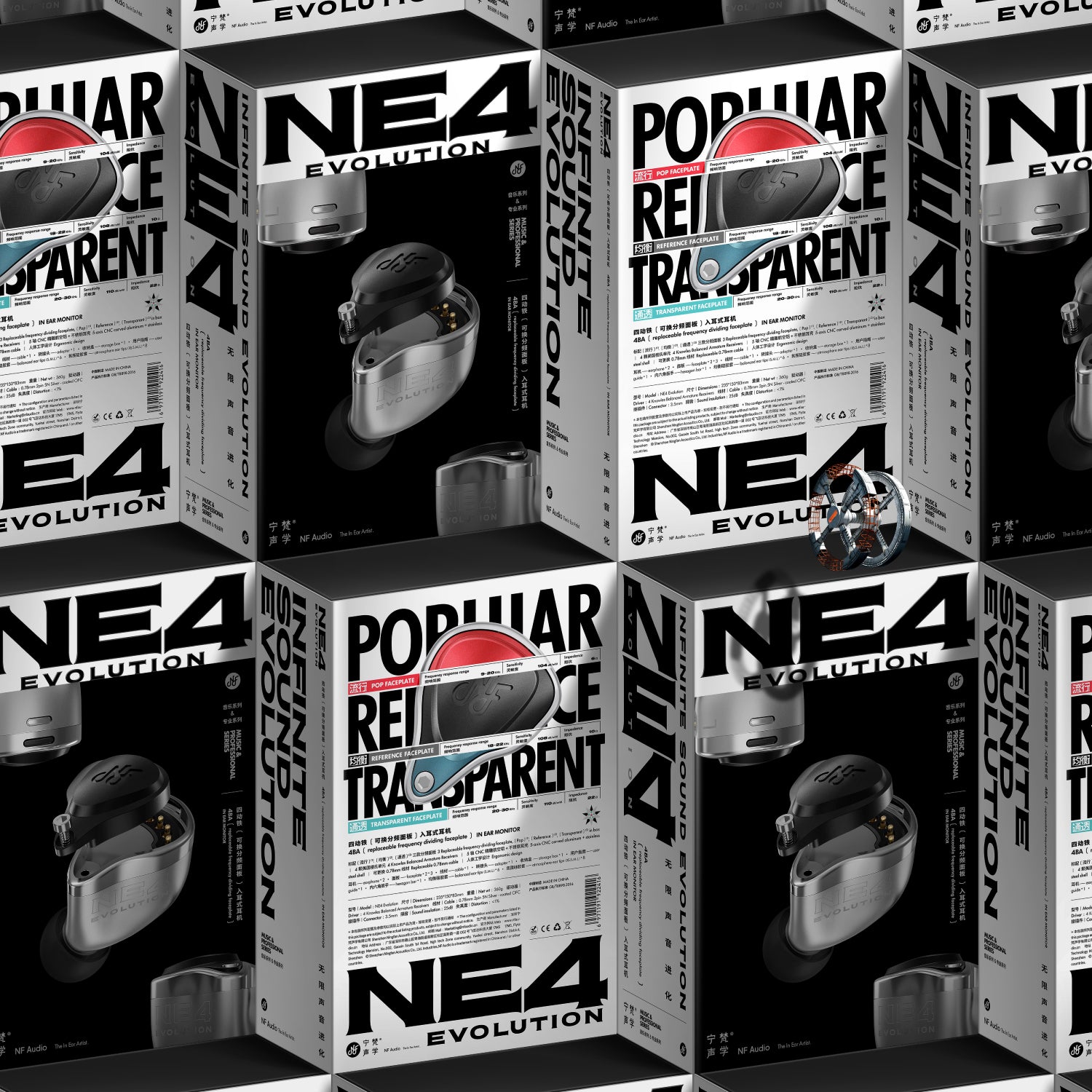 The drivers are the foundation of the sound. NE4 Evolution uses Knowles 22955+29689+31736 (composite driver), classical four-unit combination to cover full frequency range. High-quality sound with different crossover panels.