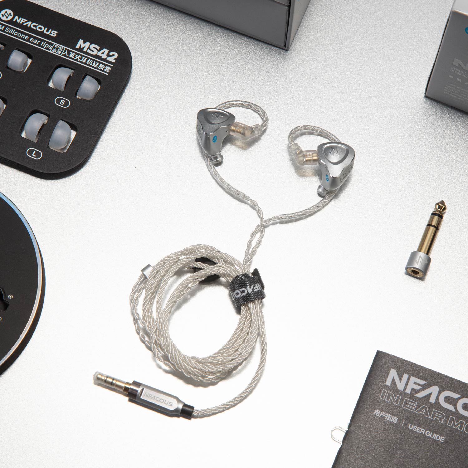 MS42 high-quality silicone ear tips (XS,S,M,L), High-quality storage box, 6.35-3.5mm gold coated adapter.