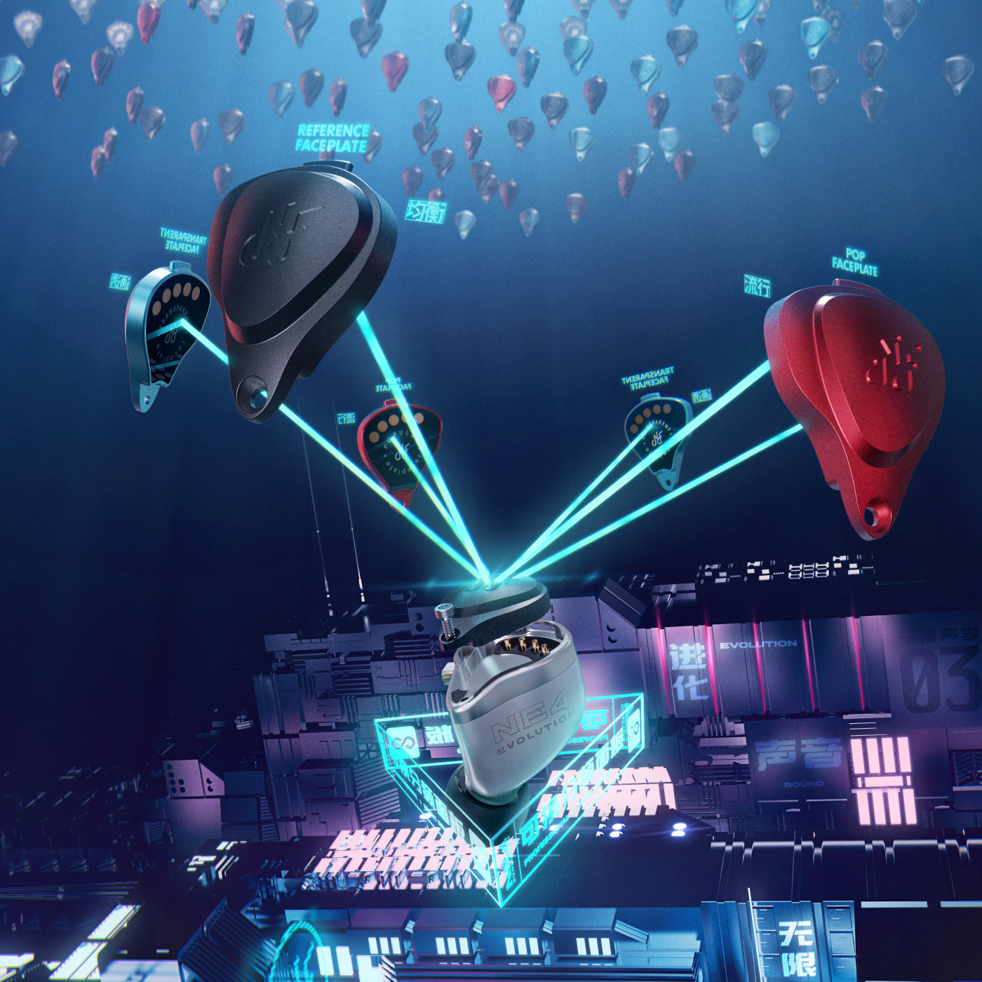 单元是声音的基础,单元足够优秀,才能获得更好的听感。NE4 Evolution,采用Knowles 22955+29689+31736(复合单元)的经典四单元组合,低频,中频,高频全面覆盖。优质的声底,配合不同的分频面板,每一种声音,都经得起考验。