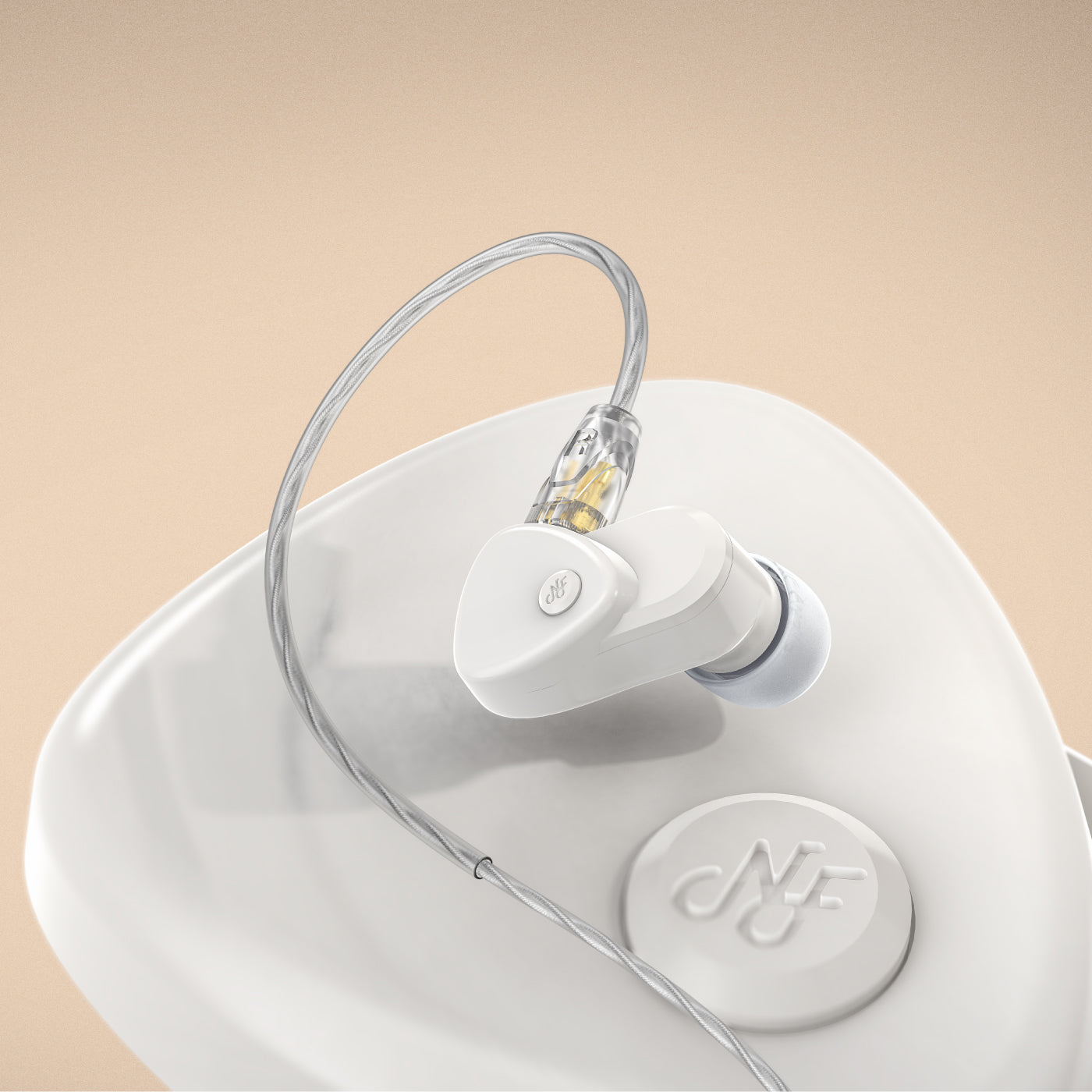 遵循宁梵声学以人耳空间造型为基础制定的外观设计与人体工学规则,体积小巧,佩戴牢固舒适,家族式拨片造型面板。